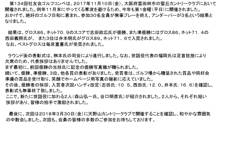 | 第134回 コンペ(聖丘CC)の結果 (2017年11月10日) | 前回の結果 | |||||||||||||||||||||||||||||||||||||||||||||||||||||||||||||||||||||||||||||||||||||||||