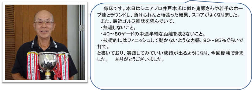 優 勝 毎床重喜 氏 | 優勝者 毎床重喜氏 優勝の弁 | ||||||||||||||||||||||||||||||||||