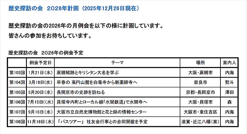 謂れなど現地に出かけて会員相互の輪を広げ歴史探訪で再発見 しませんか。解説者は社友会
